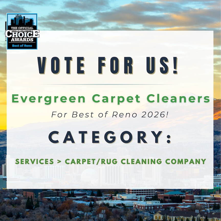 We are thrilled to announce that Evergreen Carpet Care has been named the Best Carpet Cleaning Company in the 2025 Reno News & Review’s Best of Northern Nevada awards! We are incredibly honored and grateful to all of you who voted and helped us achieve this recognition. Being chosen by our community is a true testament to the dedication we put into providing exceptional service. Thank you for trusting us with your carpet care needs and for making us a part of what makes Northern Nevada a great place to live! We look forward to continuing to serve you with excellence.